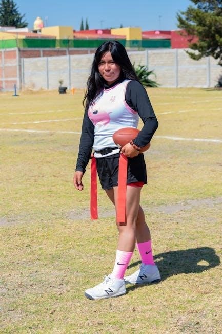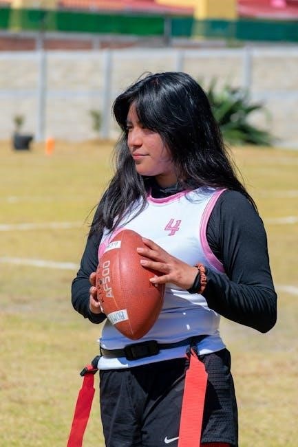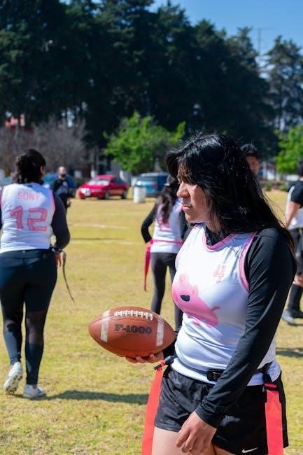 NFL Flag PDFs often showcase drills where players practice protecting flags while performing agility movements. They highlight the importance of keeping flags visible yet difficult to grab, and reacting quickly to pulling attempts. Mastering these individual techniques, detailed in the PDFs, significantly improves an offensive player’s ability to avoid being flagged.
